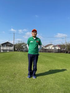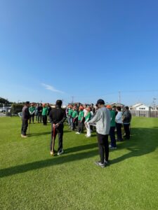 教頭先生方は、青空の下、広々とした爽やかな芝生の上で熱心にプレーされ、リフレッシュしながら