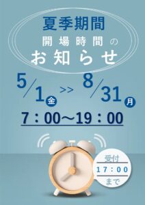 ・夏季期間: 5月1日 (金)〜 8月31日(月)