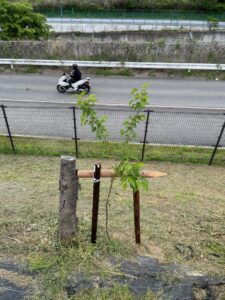 昨年植えた3本の桜の苗木がしっかり育ってきたので、